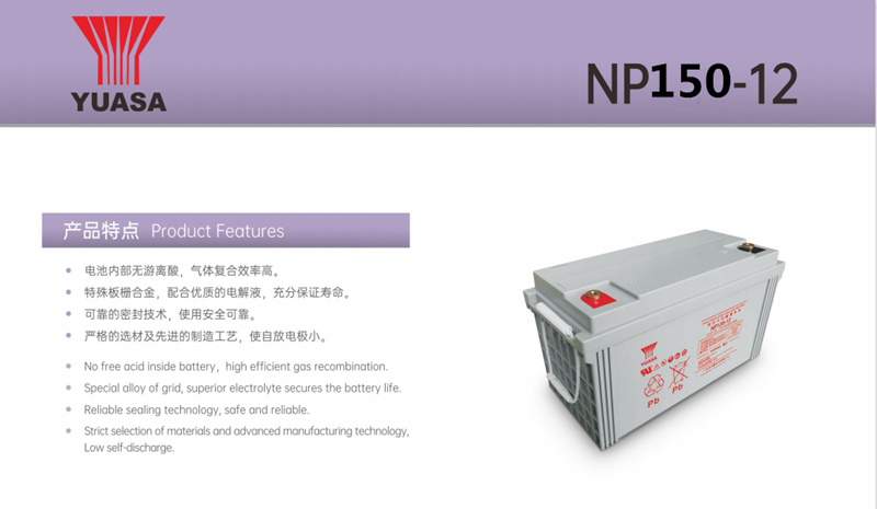 湯淺蓄電池,電池內部無游離酸,氣體復合效率高,可靠的密封技術,使用安全可靠。嚴格的選材及先進的制造工藝,使自放電極小。