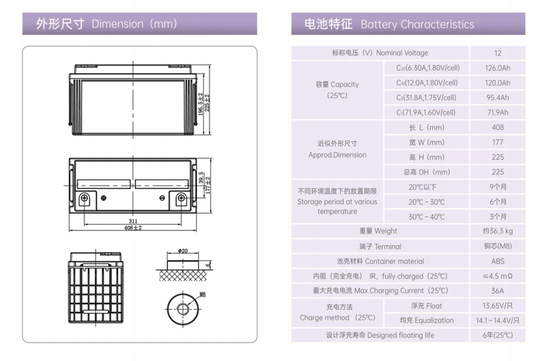 額定容量:150AH(20h率.25℃)