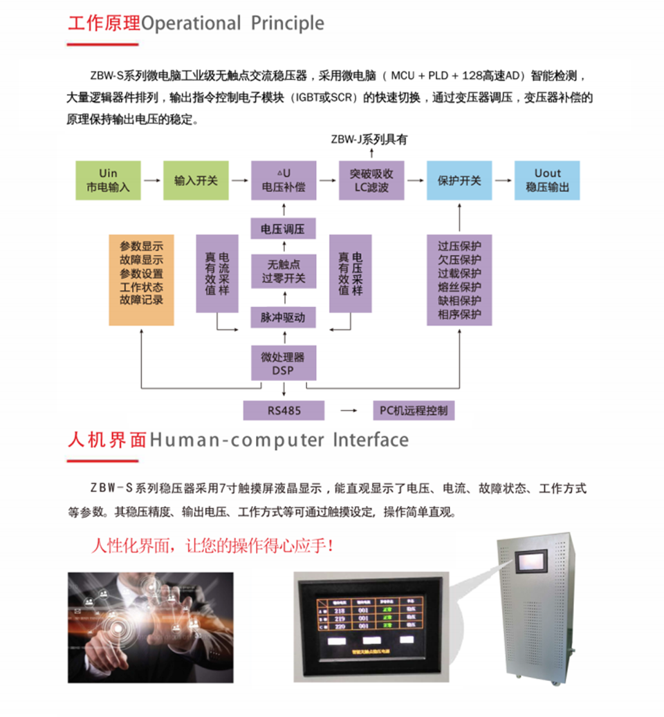 ZBW-S系列工業級無觸點交流穩壓器,滿足了高精尖設備對電源特殊需求,具有響應速度快,過零點切換,穩定精度高,無碳刷,無機械傳動,免維護,三相電壓自動平衡,使用壽命長等優點,是SBW系列機械式穩壓器升級產品。
