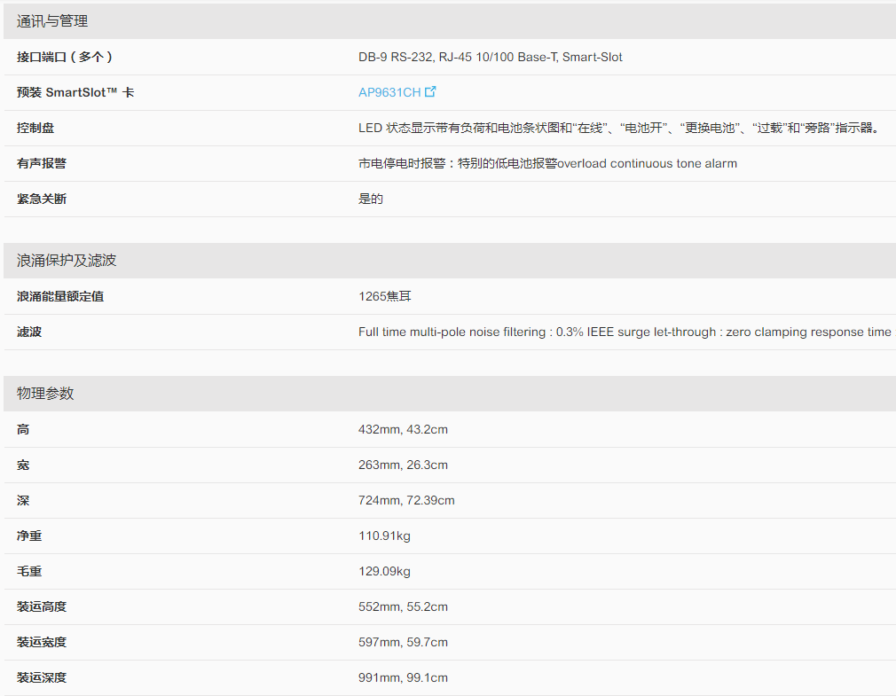 產品名稱:APC公司的Smart-UPS RT
